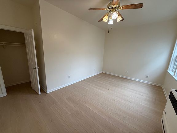 For a one-bedroom unit, the Premises are spacious, featuring high ceilings, a living room, a kitchen with an eat-in area, one full bathroom, and a bedroom, all located on the ground floor. Brand new, wall-to-wall laminated floor. On-site laundry room with coin-operated machines. Street parking only. No smoking and no pets. One-year lease.