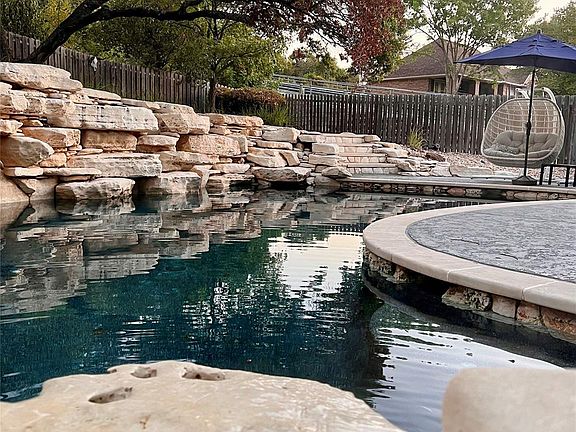 Step inside to soaring ceilings, floor-to-ceiling windows, and three unique porthole windows framing scenic Hill Country mesas. The chef’s kitchen has been fully remodeled with a huge island breakfast bar, granite countertops, upscale appliances, and bespoke cabinetry. Meanwhile, both the primary suite and the upstairs en-suite bathroom were reimagined with spa-level design — from the steam shower with tile and glass walls to wood-plank accents in a Hawaiian-inspired retreat. Downstairs features open, flowing living areas anchored by warm neutral tile, while upstairs showcases eco-friendly bamboo laminate. Every detail has been considered — from Tiffany-style mosaic lighting and ceiling fandeliers to a dedicated office space perfect for reading, relaxing, or remote work. The backyard is pure Austin paradise: a stunning, in-ground gunite pool and spa mimicking Bull Creek rock waterfall with an ample deck space for lounging and entertaining. The backyard oasis is complete with a built-in grill perfect for hosting poolside gatherings or quiet evening dinners under the stars. Surrounding the home, two zero-scaped rock gardens feature native Texas landscaping with agave, cactus, and mature oak trees. The result is a private retreat that feels both timeless and modern—a balance of Hill Country serenity and Austin sophistication.