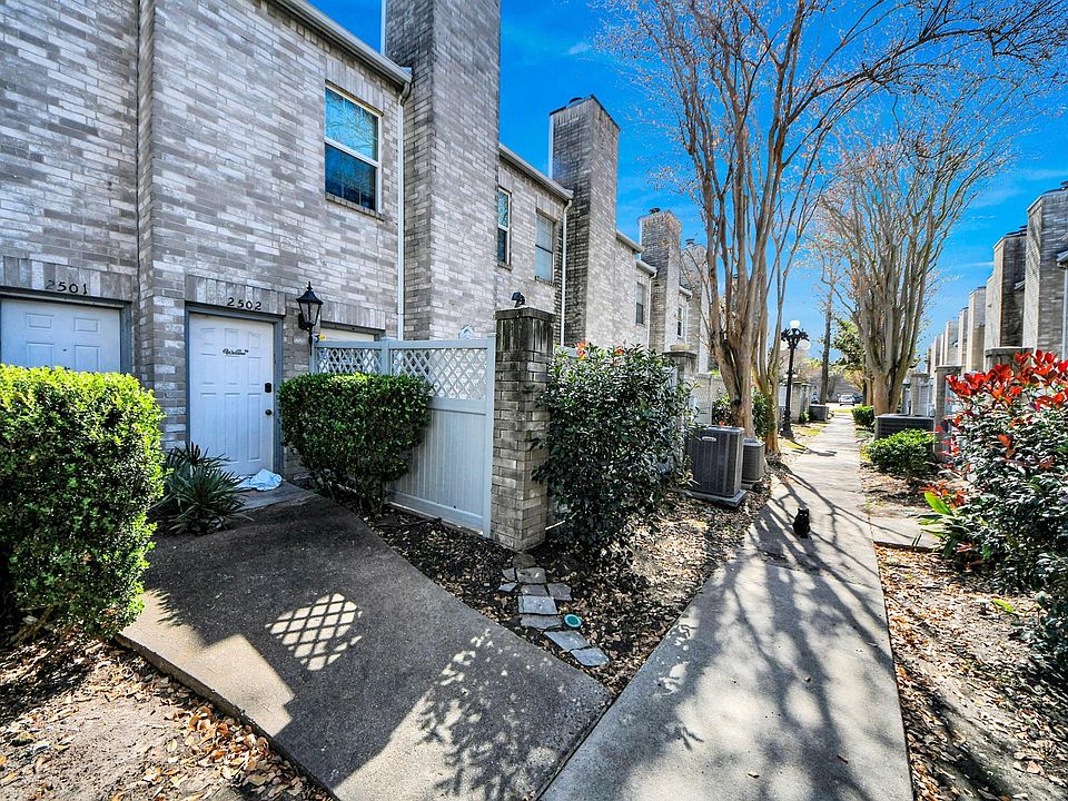 Stunning 2-bedroom, 2.5-bath condo in a gated southwest Houston community! This two-story home boasts a light-filled open living and dining area, a modern kitchen with ample cabinetry and counter space, and a convenient first-floor half bath. Upstairs, both bedrooms feature private en-suite baths, including a spacious primary suite with dual vanities, soaking tub, and separate shower. Relax or entertain on your private patio, plus enjoy the convenience of an attached 2-car garage with washer/dryer hookups. Community perks include 24-hour security, controlled access, sparkling pools, and beautifully maintained grounds. Perfectly located near major highways, shopping, dining, and entertainment. HOA covers water, exterior maintenance, and security—move-in ready and ready to impress!