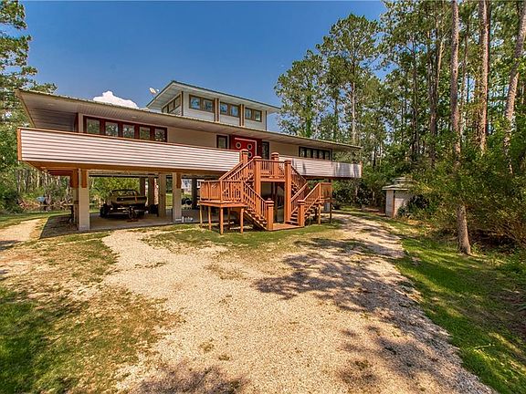 This unique waterfront property offers direct, year-round deep-water access to Lake Pontchartrain and sits on a 1.1-acre canal-front lot. Just minutes from Bayou Lacombe, it’s truly a sportsman’s paradise. The home features 3 bedrooms and 2 bathrooms, with an impressive living area showcasing 18-foot ceilings and large windows that fill the space with natural light and frame stunning canal views. Both the living and dining rooms take full advantage of the scenery. The kitchen is equipped with a convenient butler’s pantry for additional storage and prep space. The primary suite offers a soaker tub, a separate shower, and a walk-in closet. Outdoors, the property includes double front stairways, an elevator for easy access, and ample parking and storage beneath the home. A private boat slip provides effortless water access. Built with durability in mind, the home includes hurricane-rated windows, an industrial metal roof, and steel beams wrapped in cinder blocks that extend underground for added support. Whether as a primary residence, vacation retreat, or investment property, this home offers endless possibilities. With no Airbnb restrictions and a location less than an hour from New Orleans, it’s ready to be your waterfront getaway!