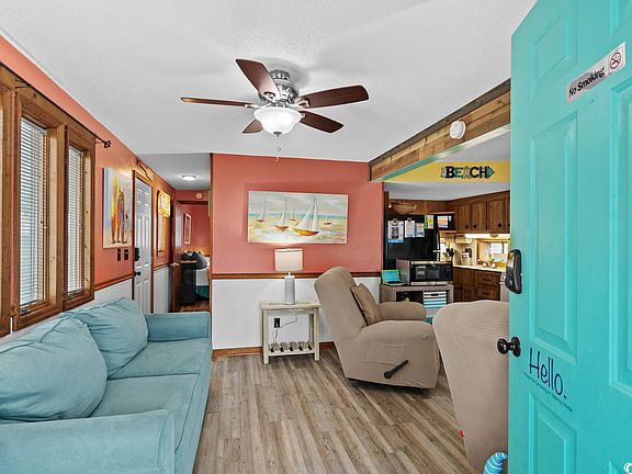 Introducing a charming 2-bedroom 2 bath beach cottage, a tranquil oasis nestled along the sun-kissed shores of Ocean Lakes. This delightful retreat offers a perfect blend of coastal simplicity and comfort, inviting you to unwind and embrace the soothing rhythm of the ocean waves. This home is ready for you to make it your home or investment property! Enjoy relaxing on the covered porch after your day at the beach! Very well maintained addition to camper located in Ocean Lakes. Home is being sold fully furnished minus a few personal items. Roof was replaced in 2017 & HVAC is 6 years old. In 2023 new composite deck with railings and Adirondack style front porch furniture. WASHER & DRYER is located in the shed and GOLF CART CONVEYS, New rear frame and new front and rear seats, new tires: December 2023 & NEW batteries. Call today to schedule your showing!