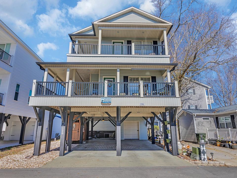 Custom built with many upgrades...this beach oasis at 5126 Ibis can now be yours! Located inside the award winning Ocean Lakes Family Campground you can enjoy many amenities and beach living with the luxuries of home. Coming up the covered stairs you will find recently upgraded Trex decking on the stairs and main deck, looking out towards the ocean. Upon entering the home you will find an open concept tiled living-room and kitchen/dining area. Perfect for meal time and movie night with friends. The kitchen serves up wonderful counter space making preparing and cooking here easy and spacious. The open design is great for entertaining for all occasions. You will also notice upgraded molding and cabinetry throughout, adding a touch of elegance and design to the home. Down the hall passed the half bath and laundry closet you will enter into the primary bedroom, which is one of 5 bedrooms. There is a rear exit door in the primary bedroom that leads out to the spacious deck. The large ensuite bathroom has double sinks and a large walk in shower. Going up the stairs you see beautiful custom iron railings leading you to the additional 4 bedrooms. There is a larger bedroom on the front of the house on the second floor that could also be another primary bedroom. This large room allows for customization of furniture and beautiful views looking out from the upper deck towards the ocean. There is also a private bathroom off of this bedroom. The other 3 bedrooms offer plenty of space as well for any guest you may invite over. The upgraded doors, cabinetry, vanities and painting show detail all throughout the home. This home at 5126 featuring 5 bedrooms and 3.5 bathrooms has 2 NEW HVAC units and has been well cared for at all times inside and out. Ocean Lakes offers a variety of amenities, including a grocery store, snack shack, laundromat, and arcade. For more fun, there’s the water park, lazy river, water slides, indoor pool, putt-putt course, and recreation center with daily activities. The best part...the ocean is just a short walk or ride from either end of the street. You can hop on your golf cart or bike and explore the beauty of Ocean Lakes, enjoying activities and events throughout the year. This place would be perfect for living full-time or even as a cozy second home getaway or investment. There’s no HOA here, but there is a yearly lot lease that is paid half in January and half in July. With your yearly lease Ocean Lakes offers 24-hour security, gated entry, a mile of beautiful beachfront, trash and recycling service, cable television service and so much more! Don’t miss out on this amazing opportunity - schedule your showing today to see this home before it’s gone! Schools and all other information have been checked for accuracy but should always be verified by buyer and buyers agent.