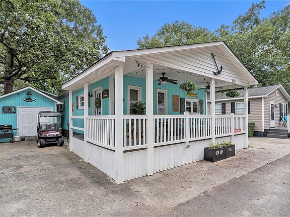 Coastal cottage two bedroom modernly furnished in the award winning Ocean Lakes Campground. Recently renovated bathroom, New Windows, New washer and dryer, New refrigerator and primary bedroom accented wall with shiplap. Spacious front porch to enjoy anytime of the day. Golf cart included. Ocean Lakes amenities include gated community with indoor/outdoor pool, waterpark slides, beachfront golf cart parking, recreation center, putt-putt golf, tennis courts, shuffle board, playground, arcade, garbage, cable tv and 24 hour security. Measurements are to be verified by buyer.
