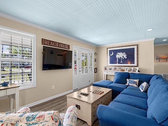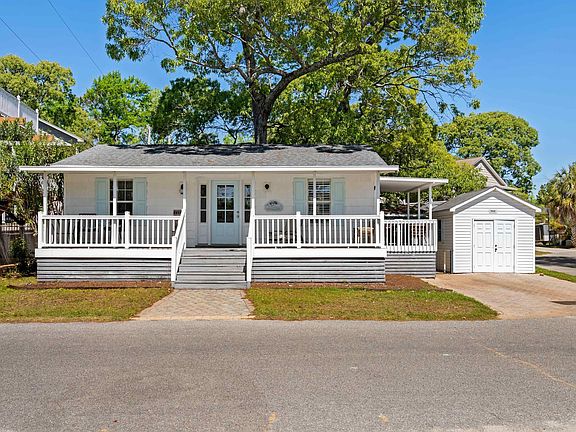 This charming 2-bedroom, 2-bathroom beach cottage that blends comfort with coastal living has an open floor plan, creates a bright, airy space, perfect for hosting or simply relaxing. French doors lead you to a cozy deck, seamlessly connecting the indoor and outdoor worlds—ideal for soaking up the sun or enjoying breezes. The front porch exudes charm and welcomes relaxation, while the patio is your go-to spot for entertaining guests, sharing meals, or enjoying evenings under the stars. The yard feels park-like, with plenty of space to stretch out and a sense of tranquility that adds to the home's allure. To top it all off, a shed or garage is ready to house your golf cart, making beachside commutes even easier. It's the kind of place where every corner invites you to unwind and embrace a lifestyle of leisure.