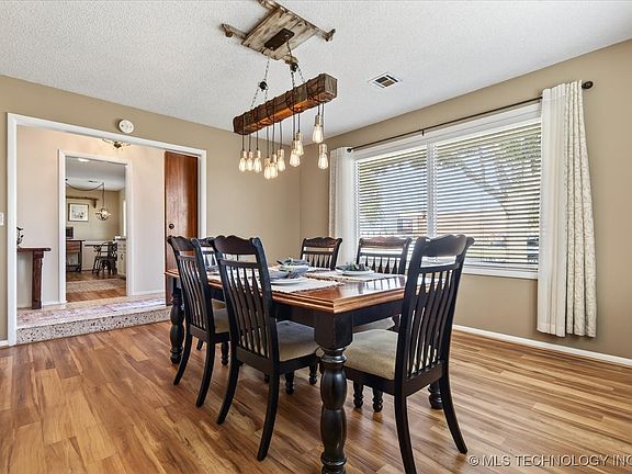 Welcome home to this charming 3-bedroom, 2-bath property in one of Bartlesville’s most desirable neighborhoods! Step inside to discover custom trim, handcrafted details, and a spacious, thoughtfully designed layout perfect for comfortable living. The kitchen offers a cozy breakfast nook, complemented by a formal dining room highlighted by a stylish farmhouse industrial-inspired light fixture—ideal for gatherings and entertaining.