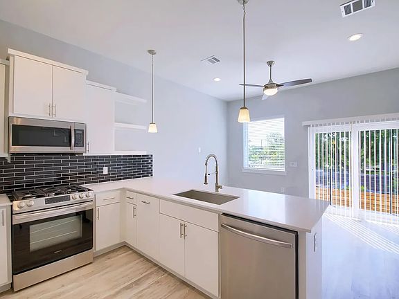 Discover contemporary comfort in this sleek, 2-bedroom, 2-bath condo nestled in a vibrant East Austin location. Built in 2020, this thoughtfully designed home delivers over 1,350 square feet of bright, open living space with soaring 12-foot ceilings and a seamless flow between the living room, kitchen, and balcony. The top-floor primary suite offers privacy and tranquility, while the secondary bedroom features a walk-in closet and a luxurious walk-in shower. Enjoy the ease of in-unit laundry, all included Samsung stainless steel appliances, and thoughtful fixtures throughout. Practicality meets modern living with an attached garage and covered carport, plus a shared pet play area for your furry friends. Conveniently located just steps from Govalle Park, trendy coffee shops, and restaurants, and only minutes from UT and the airport, this is East Austin living at its most refined and accessible. Lease terms are flexible, and all appliances, including washer, dryer, and refrigerator, are includedeverything you need to move in and start living.