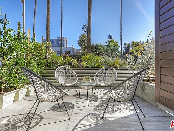 Modern elegance and abundant natural light make this front-facing unit a special find at The Metropol, a sought-after condominium community in the heart of Hollywood. The spacious residence features a sophisticated design aesthetic that includes an airy open layout with recessed lighting, wood flooring, and oversized windows to let in the sunlight. Glass sliders provide seamless flow to a private patio, a great spot for morning coffee or an evening glass of wine. In the kitchen find wood cabinetry and stainless appliances. Both bedrooms have built-in closets and attached baths; there is central heat and air conditioning and in-unit laundry. Amenities in this intimate, well-maintained community include a gym, lounge area, and underground parking with controlled access. Recreation is nearby at Runyon Canyon Park, and there are endless options for take-out and delivery. Your market run is a breeze with Trader Joe's and Gelson's just a few blocks away.