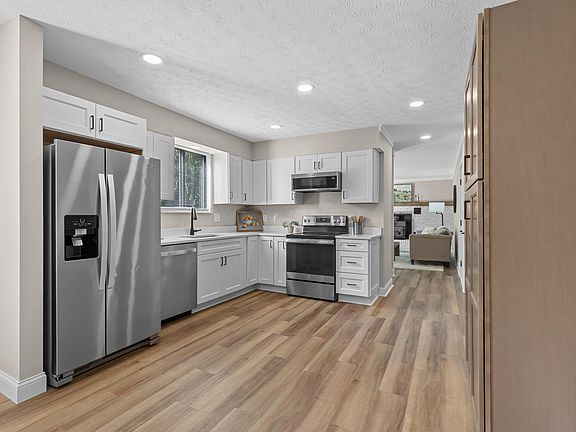 Discover the perfect blend of modern updates and country charm in this beautifully renovated home, set on an acre in the highly sought-after New Albany School District. Step inside to find sun-filled spaces featuring new wide-plank flooring throughout the main level and fresh neutral paint that align with today's design trends. The heart of the home is the stunning renovated kitchen, boasting new cabinetry, sleek quartz countertops, and stainless steel appliances—ideal for everyday living or hosting family and friends. Multiple living areas provide flexibility, including a formal living room/den and a cozy family room warmed by a wood-burning stove. Upstairs, you'll find spacious bedrooms and updated bathrooms, including an expansive owner's suite with a private bath, all designed for comfort and versatility. Partially finished basement with a rec room and abundant storage. Outside, enjoy the peace and privacy of your expansive lot with plenty of room to play, garden, or simply unwind on the new deck. All just minutes from New Albany's vibrant shops, dining, and schools—this home truly offers the best of both worlds.