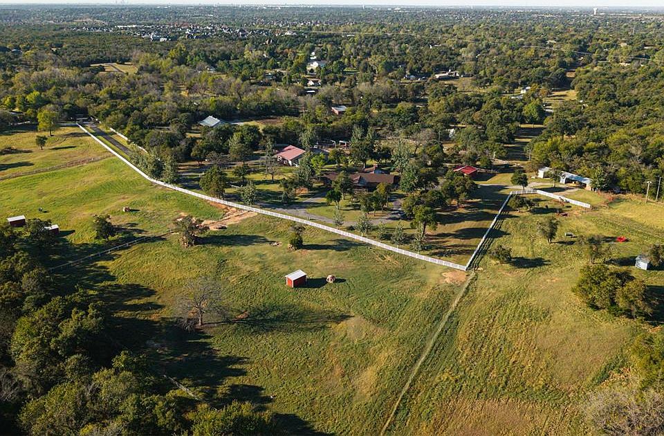Step onto this amazing 25-acre (mol) property that is every equestrian's dream! This property has the convenience of being just outside of the heart of Edmond while also having the feel of seclusion & privacy. This home has a private road that leads up to the property as well as a gated entrance ensuring security. As you drive through the property you will see multiple fenced-in pastures with loafing sheds & 6 Nelson heated automatic waters. At the top of the property sits a beautiful ranch-style home that fits in perfectly with the wooded landscape. Inside, you will find that no detail was overlooked with a beautiful sunken den perfect for cozy nights, a large great room off of the kitchen that has vaulted ceilings with stunning stained timber beams, dual sliding glass doors flank the room for a beautiful cross breeze on cool summer nights, a statement fireplace, floor plugs for convenience and so much more. In the kitchen you will find stunning custom cabinetry, Thermador appliances including an integrated dual fridge/freezer, gas range, warming drawer, dual oven, ice-maker, and microwave. This kitchen has it all and is truly a chef's dream. Off the kitchen is the guest quarters with a bedroom and full bathroom. On the other side of the home is the primary bedroom with private patio access and en-suite bathroom. The bathroom has custom his and hers vanities with plenty of storage, large picture windows, soaker tub, walk-in shower, toilet closet, and custom walk-in wardrobe. There are two additional bedrooms, a jack-and-jill bathroom with plenty of storage, as well as a finished basement. The property has a barn with large office, half bath, 9 horse stalls, riding arena, wash bay, stocks w/ foal compartment, tack & feed rooms, walker, pipe and v-mesh fencing along w/ durable white PVC fencing, shop with electricity, automatic 22KW house generator, a lean-to for large equipment, hay storage and 4-5 acre paddocks w/ multiple smaller paddocks. This home is a must see!