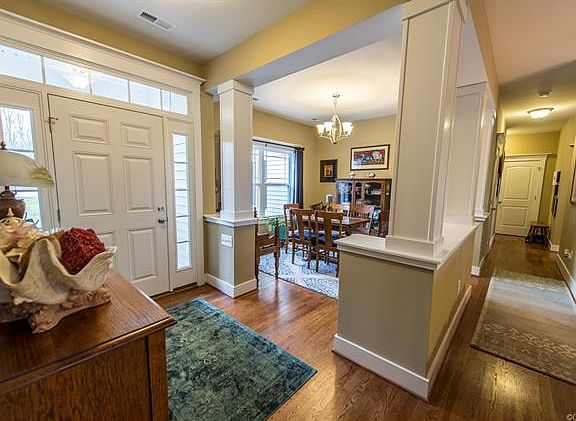 Custom Craftsman style home that overlooks an amazing scenic water view,located in a serene,new community. This home is loaded with upgrades and consists of front door side lights and transom windows,9ft ceilings,beautiful hardwood floors and custom craftsman style trim throughout. Family room is open to the Kitchen and Dining Room with a stone fireplace. The custom Kitchen and Nook area consists of granite counter tops,pendant lights,stainless steel appliances,gas cooking and a pantry.Dining Room is placed along the family room with decorative square columns and a half wall.The Large Master Bedroom has 2 nice size walk-in-closets,Master Bath with corner soaking tub,separate shower with glass enclosure,ceramic tile flooring and a raised double vanity. 2 additional bedrooms on the 1st floor with nice size closets and easy access to the ceramic tiled,full bathroom. Upstairs you have the 4th Bedroom that would also make a great craft room/game room or office. Other great features include a large 1st floor Utility Room,14 X 10 rear covered porch,patio,2-Car garage,huge attic storage,herb garden area and a paved driveway. You will fall in love with this Home and the breathtaking views!