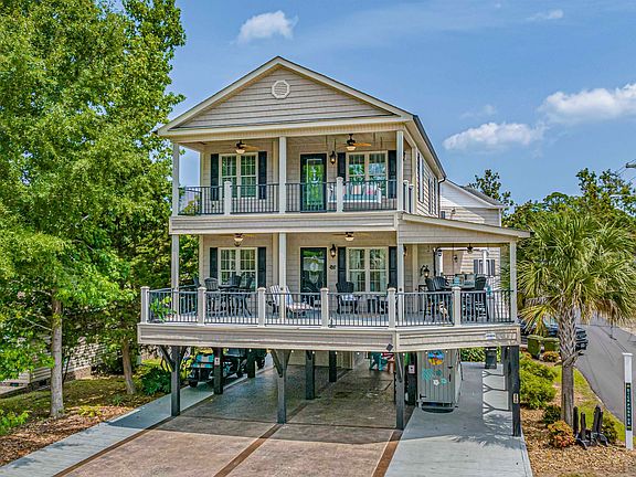 Discover the perfect balance of luxury, convenience, and comfort with site MH-89B behind the gates of the Award Winning Ocean Lakes Family Campground. Location, Location, Location! Conveniently located on a corner lot, this is the perfect opportunity to stand out amongst the crowd, entertain, and people watch! With countless upgrades including stamped concrete, an extended covered main level porch, covered steps, shaker vinyl siding, outdoor bar, and two levels of decks. Upon entering the main door, you're greeted by an open concept living room that is connected to the kitchen and eat-in dining space. Durable ceramic tile flooring throughout, the kitchen offers upgraded cabinets, granite counter tops, black appliances, and a center island for additional prep-space. Offering 4 spacious bedrooms and 3.5 baths, the downstairs primary bedroom offers an additional door that leads out to the back half of the oversized covered porch. Sit back, relax, and enjoy the golf-cars riding by. The primary ensuite has a vanity with dual sinks, ceramic tile shower, and a jacuzzi tub. Upstairs, there are 3 additional bedrooms and 2 baths. With plenty of space for everyone, one of the upstairs bedrooms spans the entire front of the home. Offering plenty of space with a sitting area, ensuite, and access to the private upstairs balcony. Coming fully furnished with high quality finishes including composite furniture on the exterior as well. Do not let this opportunity pass you by! With countless opportunities to be made, Site MH89B can be used as second home, primary residence, or the perfect opportunity for an income producing property. Perfect for anyone, this home is ideally positioned to enjoy summers by the South Carolina Coast. Home is conveniently located close to all the amazing amenities Ocean Lakes has to offer! Amenities included are indoor/outdoor pools, lazy river, waterpark, mini-golf, arcade, basketball courts, volleyball courts, and much more! Come check out this property today! All measurements are approximate and not guaranteed. Buyer responsible for verification.