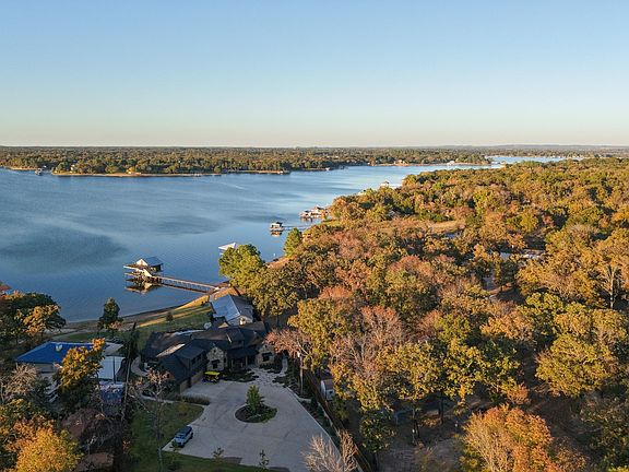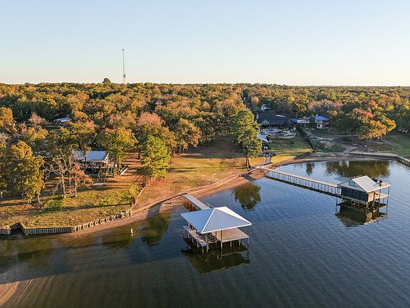 Cozy lake cottage on 3.4 acres with nearly 200 ft of waterfront, great water depth, and a brand-new top-of-the-line boathouse! Charming 1,104 sq. ft. home ideal as a weekend getaway or a place to stay while building your dream Lakehouse. The existing residence can easily become a future guest house for family and friends. Sellers have custom 5,531 sq. ft., 5 bed, 6.5 bath, 3-car garage house plans already drawn up for the property, and they’re included in the list price—making it even easier to bring your vision to life. The property is fully fenced with a gated entry and offers lots of buildable land surrounded by mature trees for privacy and space. No known restrictions—so there’s potential for multiple homes (with county permit for septic system(s), livestock, or even short-term rentals. Inside, the home has been freshly painted for a bright, light, and inviting feel. The living area features a wood-burning fireplace and large picture window overlooking the property and open water. The home’s elevated position provides beautiful lake views from both the living room and kitchen. The kitchen includes granite countertops, stainless appliances, newer-style cabinets, crown molding throughout, and tile floors (no carpet). A huge covered deck extends the living space outdoors—ideal for relaxing or entertaining. Outbuildings include a large RV-boat barn that can accommodate multiple vehicles, a two-bay metal barn with enclosed shed area, plus two tool sheds. Plenty of room to add a large metal building, livestock barn, or barndominium! Livestock allowed per acre within Henderson County restrictions. The new boathouse is a showstopper—built with all-aluminum decking that’s low-maintenance, cool to the touch on hot days, and never needs staining or painting. It includes a wide walkway, boat and jet ski lifts, and a massive covered seating area perfect for lakeside gatherings. A rare waterfront find offering acreage, great water depth, and upgraded boathouse.