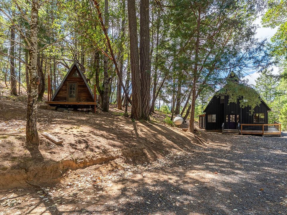 PRICE REDUCED! Don't miss this rare opportunity to own in a tranquil forest setting. Discover this unique 40 acre compound tucked away in a peaceful and private setting. Surrounded by forest yet filled with natural light, the main home offers comfort and beauty in a truly serene environment. Enjoy seamless living in this stunning open-concept living room and kitchen, where modern updates meet timeless craftsmanship. Enhancements include luxurious Brazilian Rosewood flooring that adds warmth and elegance throughout. A striking Thelin Thompson Gnome wood stove serves as both a functional centerpiece and a stylish statement. The kitchen is equipped with a premium Wolf range, ideal for culinary enthusiasts. Together, these thoughtful upgrades create an inviting and sophisticated space perfect for entertaining or relaxing in comfort. Enjoy your own private pond - perfect for swimming, fishing, or relaxing. In addition, multiple cabins dot the property, each full of potential and ready for your personal vision. The newer solar system provides the energy and has battery/generator backup. The property offers a deep well, and also has an ultraviolet purification system. A 2500 gallon water storage tank provides that extra peace of mind. Don't miss this chance to create your dream retreat