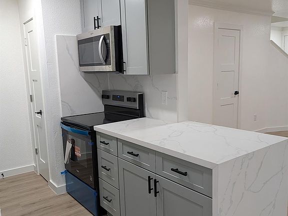 Beautifully updated 2-bedroom townhome featuring 2 full baths and a convenient half bath. This move-in-ready home offers brand-new cabinets, quartz countertops with matching backsplash, and modern light fixtures throughout. Bathrooms have been refreshed with new toilets and a sleek stand-up shower. Enjoy new carpet in the bedrooms and durable PVC flooring in the main living areas. Contemporary upgrades, low-maintenance living, and a functional layout make this townhome ideal for homeowners