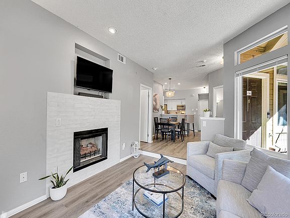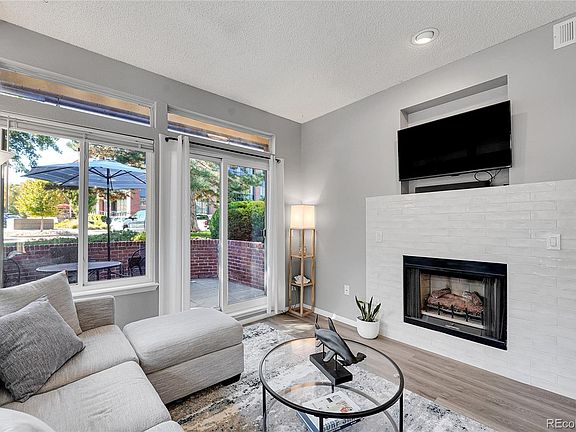 *OH Friday, 10/3 4-6pm* Move-in ready DTC condo featuring sleek updates, floor-to-ceiling windows, a sun-soaked wraparound patio, and TWO garages! Ground-level living and an open layout create effortless flow in this peaceful home, just steps from premier dining, shopping, and entertainment. A gas fireplace with subway tile accents anchors the living room, drenched in southern sunlight with sliding-door access to a generous brick-fenced patio. The home’s smart spaces include a dining area paired with an eat-in bar, creating seating for six. The modern kitchen stuns with sleek quartz counters, stainless steel appliances, custom triangular tile backsplash, and a pantry paired with full-sized in-unit laundry. The primary suite is fresh and bright, with large windows set above an oversized ledge, framing lush greenery for added privacy. A spacious walk-in closet and linen closet pair with a spa-like en suite, featuring a soaking tub and standing shower. The second bedroom is ideal as a guest room or home office. Relish rare outdoor living space! The extended patio offers room for grilling out or dining al fresco. A pool, clubhouse, and fitness center add community convenience. Step outside your door to the best of DTC! Enjoy coffee at Monk & Mongoose, brunch at local favorites like Urban Egg or YaYa’s, live shows at Fiddler’s Green or Comedy Works, and outdoor adventure at Cherry Creek State Park with trails, paddleboarding, and more. With I-25 just minutes away, downtown Denver, nightlife, and weekend mountain escapes are always within reach.