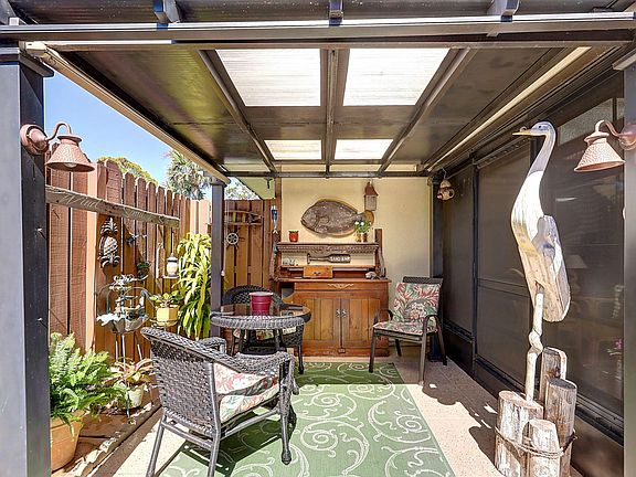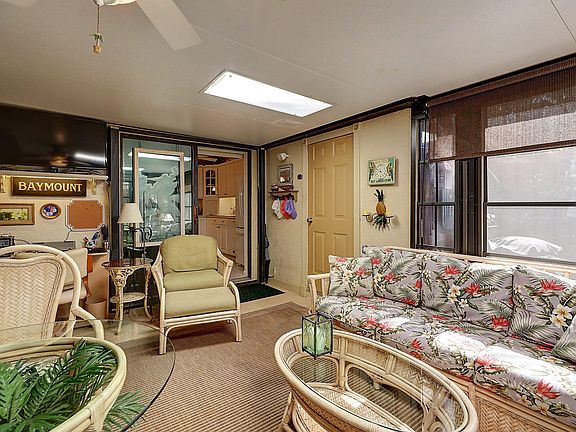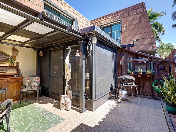 Great Location within the River Pines community. Directly across the street from many community amenities including: pool, pickleball, tennis, racquetball courts. Owners have done many upgrades to this lovely residence. Part of the outdoor patio area has been glass enclosed and added to the air-conditioned living space; currently set-up as a small office space. Another part of the outdoor area has been roofed with opaque panels that provide for a sheltered, open-air, private sitting area. Outdoor space also includes an attached storage area. Home has cute Key West style decor, some furnishings stay. Decorated by a professional art restorer and appraiser.