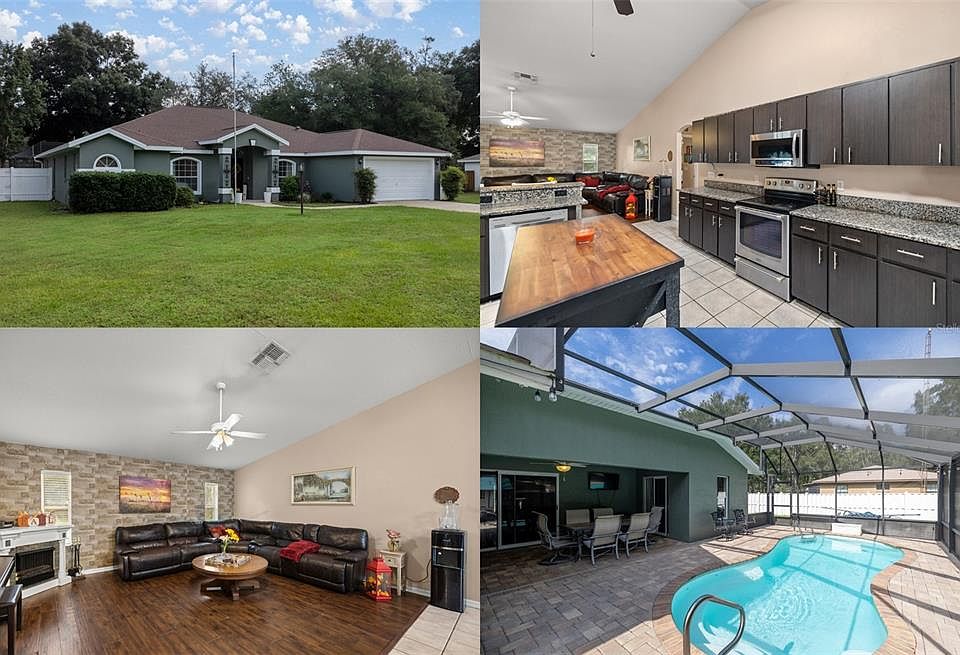 This stunning 4-bedroom, 2.5-bathroom pool home with a versatile den or office is situated on a spacious 1/2-acre lot in the highly sought-after community of Kingsland Estates in southwest Ocala. With high ceilings and an abundance of natural light, the home exudes a bright and airy ambiance throughout. The kitchen showcases elegant granite countertops and generous cabinet space, making it ideal for both storage and meal prep. Outdoors, a caged pool invites relaxation and entertaining, while the large, fenced-in backyard offers privacy and plenty of room to enjoy. The patio also features a convenient shed for extra storage, and the property is equipped with an RV hookup for added convenience. One of the best perks is the community's super low HOA fees! Conveniently located near shopping, hospitals, and just 15 minutes from the World Equestrian Center, this home offers the perfect blend of comfort and practicality.