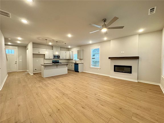 Fence, blinds and gutters included! Discover your dream home in the sought-after Osage Hills neighborhood. Emmet plan with garage on the right and North facing! 9 ft ceilings, linear electric fireplace in the living room, LVP flooring throughout the main living areas and primary bedroom, quartz countertops and more. Chef's kitchen boasting frigidaire stainless steel appliances, gas range, pantry, quartz countertops, bar pull handles and large island, all complemented by gorgeous backsplash. Luxurious primary bedroom features abundant natural light, while the spa-like primary bathroom offers a walk-in shower, tub, double sinks, and spacious walk-in closets. Additional features include a secondary bedroom downstairs, two large bedrooms upstairs and a separate laundry room. Nestled on a generous lot with covered patio that overlooks the serene sodded, fully fenced backyard. Sturdy concrete siding & brick! Model home located at 6008 SW Coywolf St- Lot 122.
