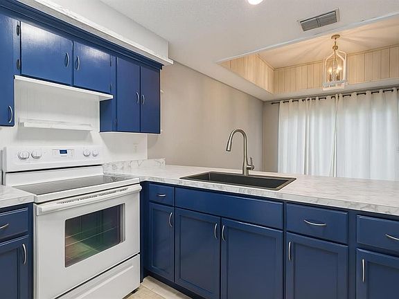 Ground-floor end-unit condoOpen layoutProgrammable keypad door lockTray ceilingSeated walk-in showerNew cabinetsModern appliances