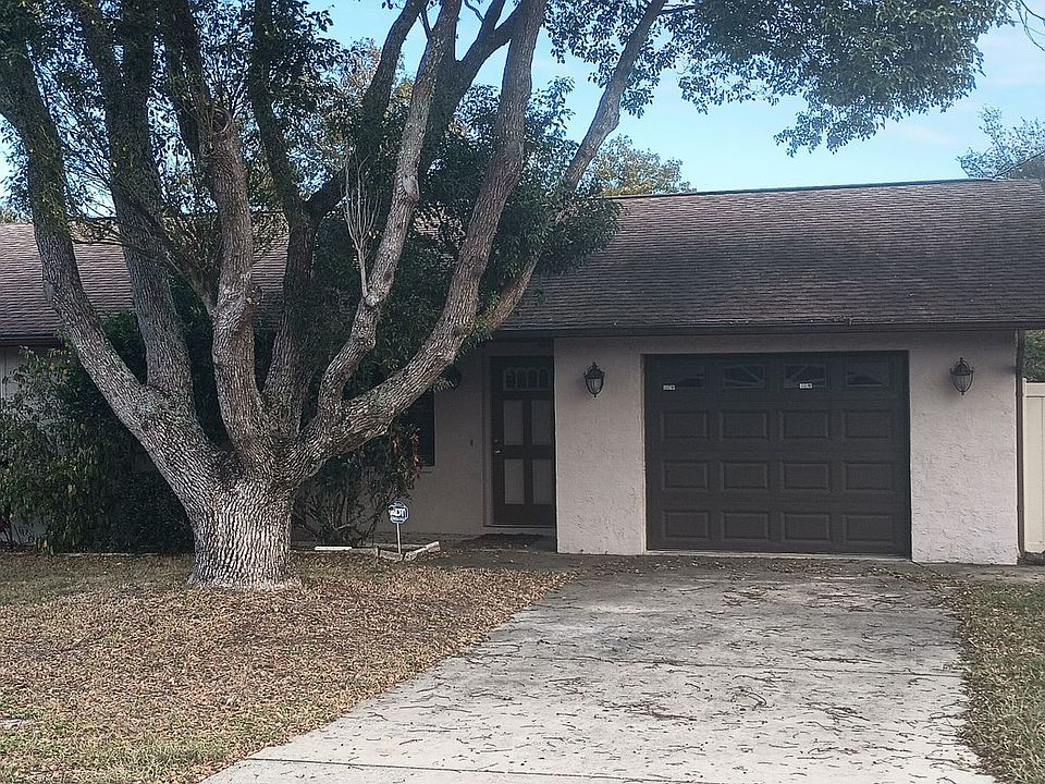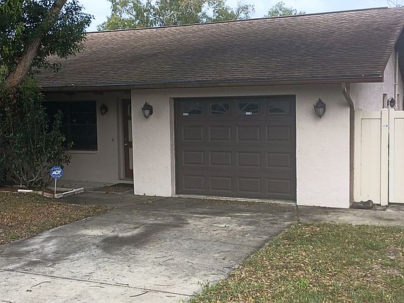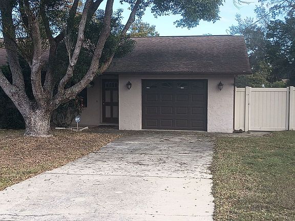 Beautiful 2 bedroom 2 bathroom house with a 1 car garage. This home is very large 1235 sqft. This home has an open living and dining room floor plan where the dining room features an elegant chandelier. Laminate interlocking waterproof flooring. Decorative Chair rail throughout dining, living, and hallway. 3 panel sliding glass door that goes out to an enclosed lanai. The home has a spacious kitchen with lots of storage and cabinet space. The master bedroom features a beautiful ceiling fan with remote dimming, with 5x7' walk-in closets. Guest bedroom has a 3x11" walk-in closet with sliding doors and newer ceiling fan. Guest bathroom has a walk-in safe tub with all the amenities. Master bather features a walk-in shower tiled floor and walls.