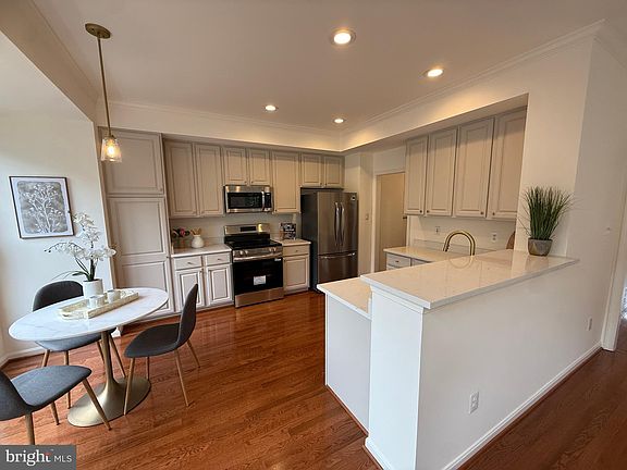 Living in Kingstowne, Alexandria offers the perfect balance of convenience, community, and comfort. This sought-after neighborhood is known for its tree-lined streets, walking trails, community pools, fitness centers, and an array of shopping and dining options right at your fingertips. Easy access to Metro, I-95, I-495, and the Fairfax County Parkway makes commuting to D.C., the Pentagon, and Fort Belvoir simple. This bright and spacious end-unit townhouse lives like a single family home with expansive windows and 9 foot ceilings while enhancing your lifestyle with fresh upgrades throughout. Cooking and conversing is a breeze in your newly renovated kitchen, complete with stainless steel appliances, Calacatta Marina Blue quartz countertops, and stylish design flowing into a cozy dining/relaxation space complete with a fireplace. Indoor/outdoor entertaining is easy on the deck off the kitchen/dining area. Host dinners in your formal dining room open to the living room. Guests can enjoy the finished rec/guest room with full bath in the lower level with a fireplace. The home features new Bruce solif oak hardwood, stylish Marquiz LVT, and new carpet throughout. Retreat to the newly remodeled spa-like primary suite with jacuzzi tub, walk in shower with Nova Dolomite Brass Marble accents, beautiful Leida Bianco Porcelain floor tile, a double vanity, and beautiful fixtures. Whether you’re entertaining on the weekends, enjoying nearby parks, or relaxing in your spacious new home, Kingstowne offers a connected, active lifestyle with all the modern comforts.