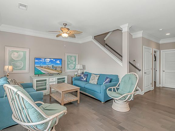 This very open and spacious 5-Bedroom, 5-Bath raised beach house is just a very short walk or golf cart ride to the beach. The kitchen has a nice breakfast counter to sit at and a large dining table, LVP flooring throughout, a huge master suite with walk-in closet. It has a great porch to sit and listen to the ocean or watch the world drive by on their golf carts while your drink your morning coffee or afternoon cocktails. This home is already setup for weekly beach vacationers and earns excellent rental income. Located in the private gated Ocean Lakes community featuring award winning amenities that focuses on being family-oriented. This home is being sold fully furnished! Call today to schedule your private showing.