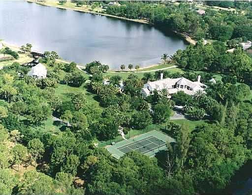 Forbes ranked Top 10 Exclusive Gated Community of Le Lac is located in the heart of Boca Raton. Le Lac's private and elite list of residents enjoys the 32 home community with three private lakes and lots from 2 to 6 acre parcels. One of the best estates of Le Lac, this stately lakeside estate has 5 1/2 acres situated at the east end of Le Lac's grand main lake. Long winding private gated driveway leads to impressive 12,500 square foot custom luxury home. Flanked by formal dining and living rooms, the soaring entry foyer is filled with light and grandeur. Seven bedrooms seven and one-half bath home features European marble floors, two coral fireplaces, media rooms, mahogany built in wet bar, two wraparound porches and a four car garage. Exterior features include a private tennis and sports court with lights, a resort style pool and spa with gazebo, custom built lagoon with lake access and a 35 foot u-shaped dock. The two-story guesthouse has beautiful lake views from the kitchen, living room and patio. Imagine sun-filled days on the 77 acre lake perfect for watersports and cruising, and gorgeous sunsets at night seen over 435 plus feet of waterfront shoreline. This residence combines the elegance of the great estates of the northeast with the sophisticated charm of a tropical resort. While this estate home is in move in condition and recently updated, the property is priced at land value. This is one of the best estate-enclave opportunities available in South Florida today.
