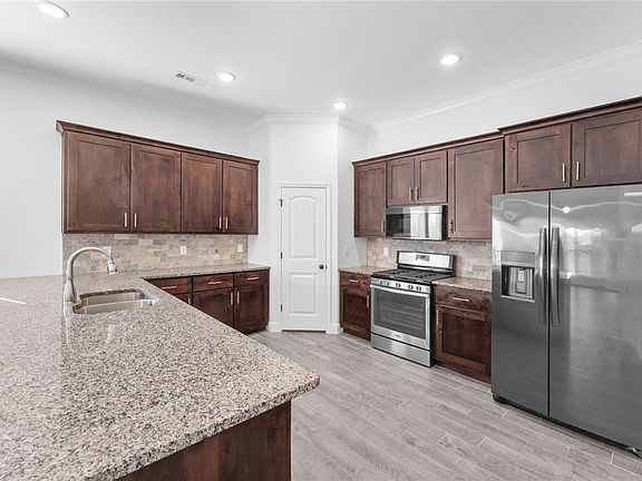 Homes like this don’t last long! This move-in-ready, 1-owner, 3 bed, 2 bath, all-brick home in the Bentonville School District is packed with OWNER UPGRADES you won't find anywhere else! Plus, enjoy a $2,500 preferred lender credit! The open layout features a cozy gas fireplace, large windows, 10 ft ceilings and seamless flow between the kitchen and living room for a bright, spacious feel - perfect for family gatherings or hosting friends. The modern kitchen includes gas black stainless steel appliances, granite counters, soft-close cabinets, a large pantry, and an upgraded refrigerator that conveys. The spacious primary suite offers dual vanities, a custom tiled shower, and a walk-in closet with direct laundry access. Major upgrades include fiberoptic wiring, hardwired internet, 7.1 surround sound pre-wire, fully insulated garage, R49 attic insulation, tankless water heater, whole-home water softener, crown molding, and 2" faux wood blinds. Pet-free and frangrance-free home. Check out the full upgrade list!