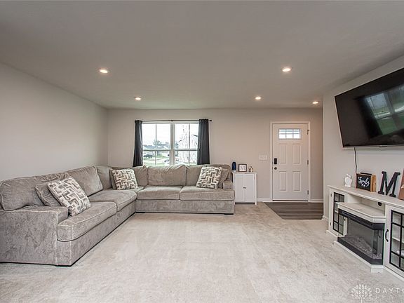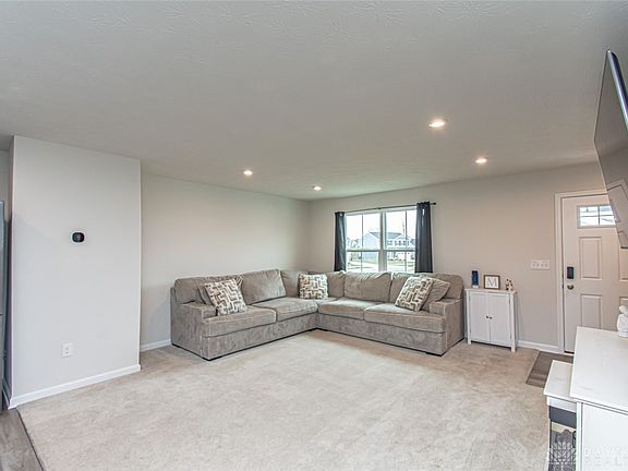 Less than a year old, this home blends modern style with Craftsman charm, featuring a stone-accented exterior. Inside, the open floor plan offers a spacious Living Room and a lovely custom Kitchen with a center island, counter bar, and stainless steel appliances. Upstairs, the second-floor laundry adds convenience alongside four generous bedrooms and two full baths. The primary suite includes a large walk-in closet and a private bath with a double vanity and walk-in shower. A versatile main-floor flex room is perfect for a home office or creative space. Step outside to enjoy the large back patio, ideal for outdoor gatherings. The full unfinished basement provides excellent storage and room for future expansion. Conveniently located between Dayton and Cincinnati, near I-75.