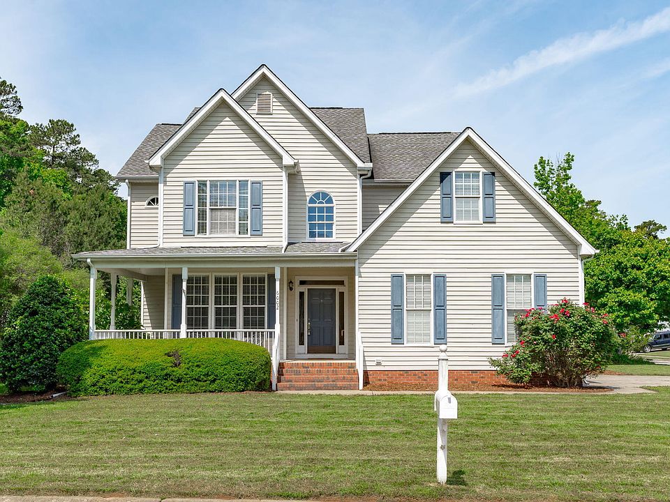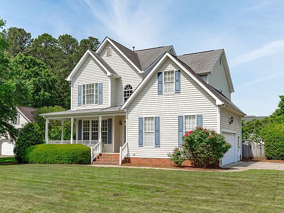 Southern Charm in an ideal South Durham Location! This dreamy wrap-around front porch home is located on a cul-de-sac corner lot in highly desirable Audubon Park. Highlights of this 4 bedroom, 2.5 bathroom home include: hardwood floors; open concept kitchen and spacious living room with fireplace; separate dining room; two ample-sized bedrooms; one larger bedroom that could also serve as a bonus; primary retreat with walk-in closet and ensuite bathroom; side entry garage; large deck and fenced-in backyard; and 2021 HVAC units for upstairs and downstairs. Neighborhood amenities include pool, tennis courts, and playground. Convenient location with easy access to RTP, RDU, I-40, and Highway 55 can't be beat!