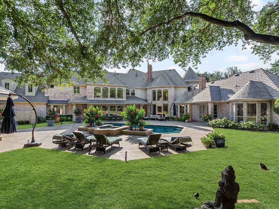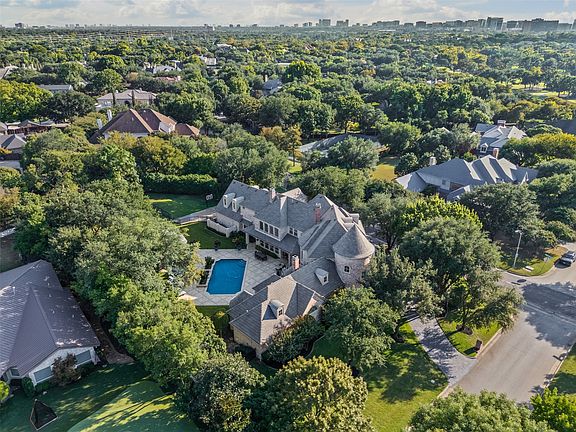 On a prominent corner in prestigious Preston Trails, this 6,800 sq.ft estate defines refined living and is situated on .88 of an acre. Behind its stately facade, a dramatic foyer opens to elegant living and dining rooms with wet bar. Perfect for entertaining and everyday family life. Light filled family room with walls of windows opens to breakfast area and chef’s kitchen featuring Thermador appliances, designer lighting, generous island and exceptional storage. Primary suite offers vaulted ceilings, built in shelves, sitting area and fireplace. Spacious, spa like master bath features a soaking tub with a view, walk-in shower and separate walk-in closets. Downstairs guest suite with private bath. Upstairs features theatre game room with wet bar kitchenette, additional living space and three ensuite bedrooms. Resort style backyard offers multiple outdoor entertaining areas for year round enjoyment, sparkling pool, gazebo with fireplace, plenty of green space, mature trees with landscape lighting truly create a one of a kind experience. Ideally located close to elite private schools, DFW & all that Dallas has to offer.