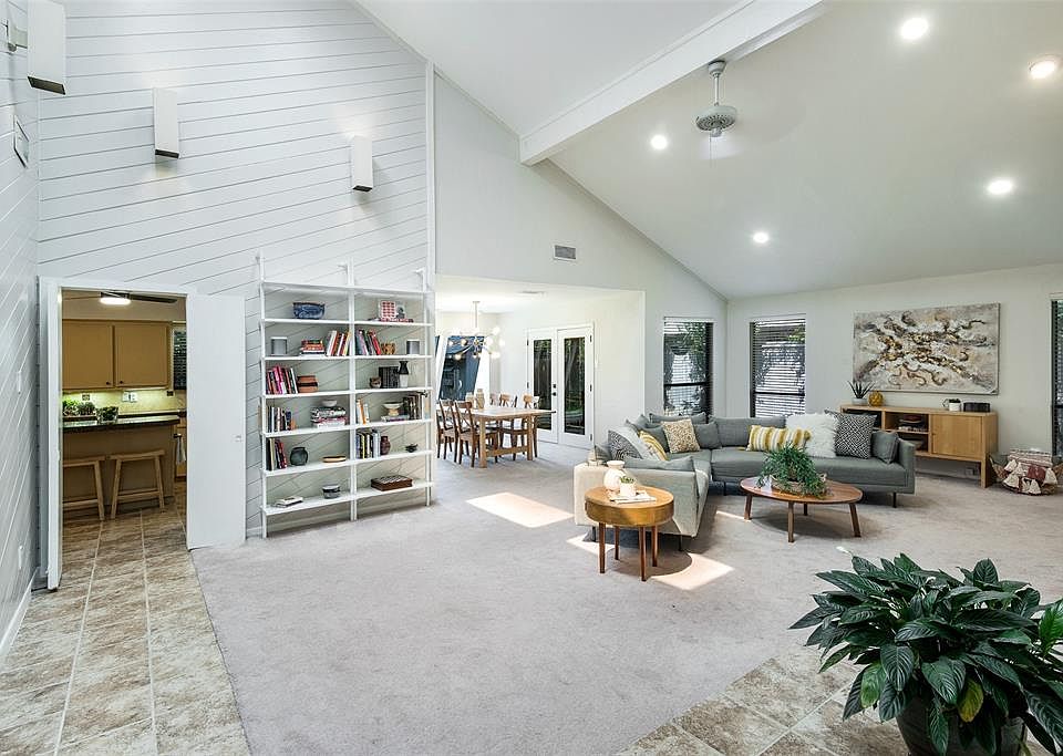 Welcome home! This unique four bedrm, three full bath house was built with crisp, modern architecture. Walk into the light filled living, dining space featuring the gas burning fireplace, perfectly located bar area, and sleek contemporary slant windows! There is nothing cookie cutter about this house. Split floor-plan allows for all bedrooms to have privacy. The upstairs bedroom, living room, bathroom is an awesome space for game room, in-law suite, or teen bedrm. Roof was replaced in 2019, all bathrooms remodeled in 2017, ceilings scraped and new LED lighting added 2021, siding is newer too! The third parking pad in rear and oversized storage unit gives ample storage space. Fridge, washer, dryer can convey! 2021-08-09