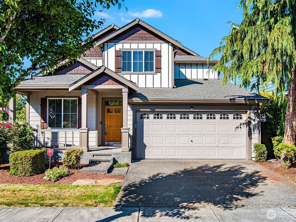 Beautiful Radiance Craftsman home on a corner lot with a welcoming covered front porch. Inside you’ll find fresh interior paint, 3 bedrooms plus a loft upstairs, and a main-floor office/4th bedroom with adjacent ¾ bath. The bright kitchen opens to the living room featuring hardwood floors and a cozy gas fireplace. The primary suite offers a private 5-piece bath and walk-in closet with California Closets. Stay comfortable year-round with central AC. Spacious 2-car garage includes extra workspace. Backyard oasis boasts a large patio, sprinklers, raised garden beds, fruit trees, grapevines, and a koi pond. Enjoy the desirable Radiance community with playgrounds, trails, parks, and more—all less than 30 minutes to JBLM or the airport.