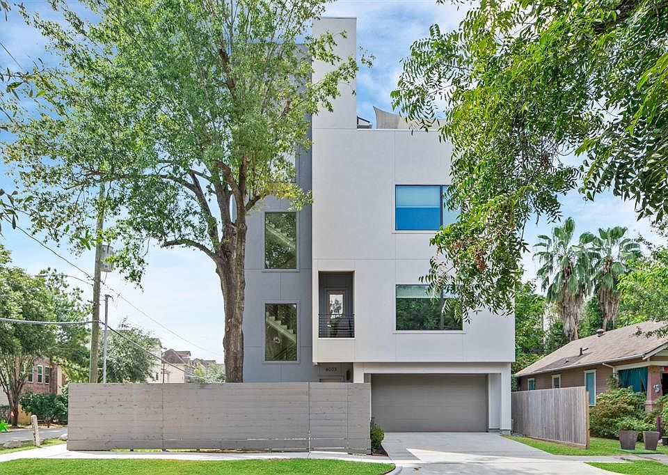 This modern home is beautiful and practical from top to bottom. Corner lot in Rice Military/Washington Corridor! Enjoy the oversized rooftop terrace with it's views and maximize storage with a rare 720 sqft garage. 1st floor bedroom has its own full bath with a frameless, walk-in shower. Modern cordless shades at sleek windows give unobstructed views and privacy throughout the home. The elevator shaft was built out with ample deep shelves. Open concept living with a brilliant kitchen island. From under mount cabinet lighting to JennAir appliances to herringbone polished-marble tile backsplash to the wide stainless undermount sink, this house is the ideal blend of style and function. Timeless wood flooring throughout - including the primary bedroom. Primary bath has a walk-in rain shower and soaking tub. Gigantic primary closet has a 24 drawer island and the laundry room is adjacent through pocket doors. Flex space at the top floor has the 2nd half bath and leads to a 540+ sqft terrace.
