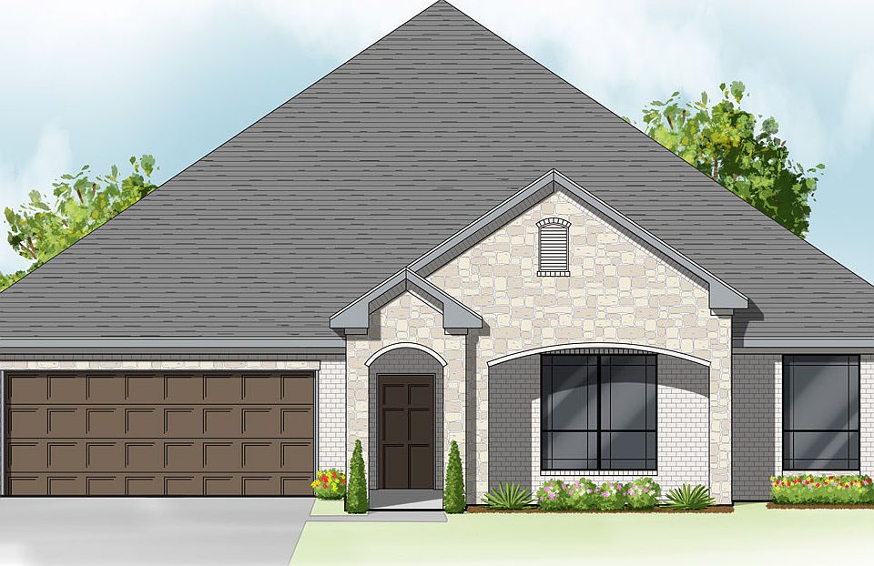 Traditional Masonry and stone arches gives this large home a commanding curb appeal. Graceful entry with masonry accents open into surprisingly modern interior with Art Deco details. Kitchen is showcased with enormous island, Quick Meal Station? and well lighted formal dining area. A large living space with French doors, Art Deco Fireplace and coffered ceiling is perfect for entertaining and includes a powder bath for guests. Large laundry area, ample storage and family foyer finish out this traditional floor plan.
