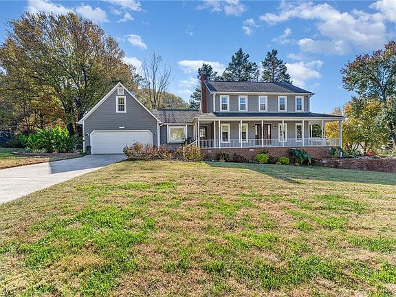 Welcome home to this charming 2-story in The Cardinal! You’ll love the inviting rocking chair front porch and fresh updates throughout. Inside, enjoy new neutral paint, updated flooring, and modern lighting and plumbing fixtures. The bright kitchen features granite countertops, a tile backsplash, stainless steel appliances, LVP flooring, a pantry, and a sunny breakfast nook—perfect for family meals. The cozy den offers built-in bookshelves and a fireplace for relaxing nights in. A main-level bedroom connects to a beautifully updated full bath, great for guests or in-laws. Upstairs, the spacious primary suite includes a renovated bath with dual granite vanities and a tiled shower, plus two more bedrooms and another updated bath. The finished bonus room above the garage, complete with its own mini-split HVAC, is ideal for a playroom, home office, or gym. Enjoy the outdoors on the new deck with retractable awning overlooking the large .51-acre lot—perfect for play and entertaining!