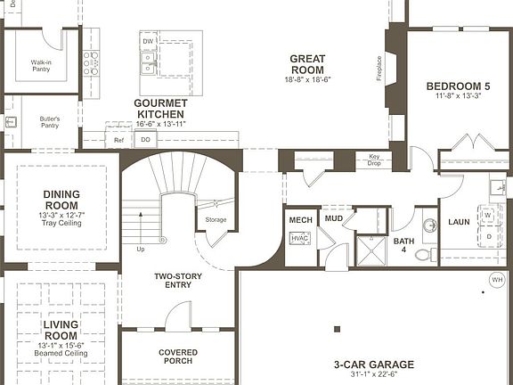 5 spacious bedrooms, 4 full bathrooms, and a 3-car garage, this home offers the perfect blend of elegance and functionality. From the moment you step into the grand two-story entryway, you’ll be captivated by the open layout and upscale details. Tray and beamed ceilings add architectural interest to the expansive living and dining areas, creating a warm yet sophisticated atmosphere.