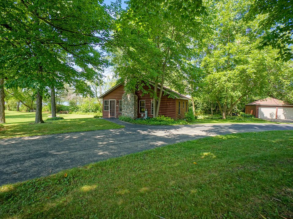 Remarkable lake home with 50 ft of frontage on beautiful Pike Lake! Enjoy this gorgeous setting on approx a 1 acre lot with mature trees, lake views, huge lakeside yard, and level lake frontage. Well maintained home is ready to use year round as a main residence or 2nd home on the lake. The home used to be part of Casey's Eagle Point Resort. Interior features include an open concept living area with vaulted ceiling, gas fireplace, and upper loft. Kitchen has breakfast bar and appliances included. Large dining area. 2 bedrooms and 2 full baths. Home comes completely turn key with most furnishings included! Plenty of parking space. 2-car detached garage plus additional storage shed. This is a great opportunity to start enjoying the lake life!