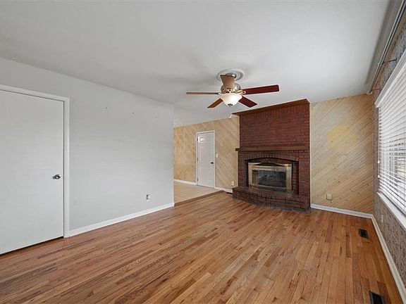Solid ranch home on just over a third of an acre. Beautiful red brick fireplace and built-in bookshelves in the living area. Spacious kitchen with plenty of cabinets and all appliances stay. Eat-in kitchen. Don't miss the convenient half-bath tucked behind the primary bedroom door! NO carpet -- hardwood floors through living area, hallway, and all three bedrooms. Tile in kitchen and bathrooms. Finished basement includes ample rec space, laundry area, and the second bathroom. Thoughtful storage throughout the home, including a storage shed in the backyard. Plenty of space for entertaining with an inviting front porch, and large fenced backyard with deck and covered patio. Brand new hot water heater.
