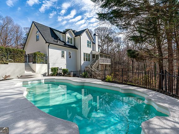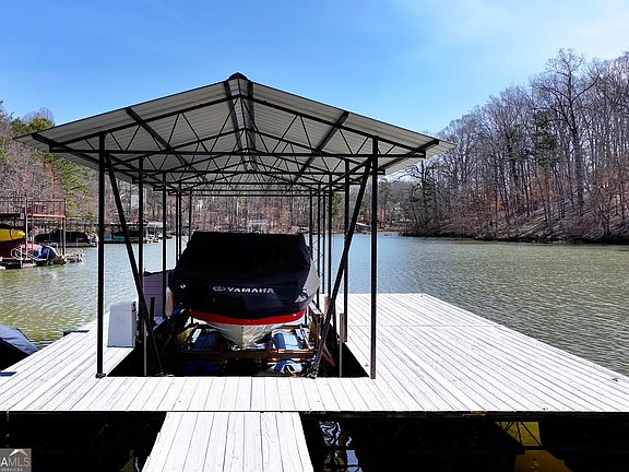 Exquisite south-end Lake Lanier home in the sought-after Harbors community, offering direct lake access, a sparkling private pool with an expansive pool deck, and a covered dock with dual Sea-Doo ports and a swim platform. Tucked in a quiet cove, the property sits on a large corner lot with a fenced backyard and wooded views. Located near Hideaway Bay, Aqualand, and Port Royale marinas and just minutes from Historic Downtown Flowery Branch, this home is perfect for those seeking the lake lifestyle without sacrificing comfort or convenience. Inside, a two-story Foyer welcomes you into a spacious Den and Formal Dining Room. The Chef's Kitchen features stainless steel appliances, granite countertops, and a sunny Breakfast Room. The adjacent Family Room includes a cozy fireplace and opens to a screened-in porch-ideal for outdoor dining or simply enjoying the peaceful setting. Upstairs, the Primary Suite features tray ceilings, a Sitting Area, and a large Bath with heated tile floors, dual vanities, a clawfoot soaking tub, a custom multi-jet shower with a bench, and a walk-in closet. Three additional Guest Bedrooms and a renovated Guest Bathroom complete the upper level, providing comfortable space for family and guests. The finished Terrace Level includes a private Secondary Suite with an ensuite Bath and walk-in closet, a Billiards Room, Media Area, and a versatile Flex Room perfect for a Home Office or Gym. A second screened-in porch opens to the backyard and pool-great for entertaining or relaxing in a low-maintenance outdoor space. Recent updates include a NEW roof, NEW energy-efficient windows throughout the home, including all bedrooms and the entire front-facing side, and NEW refinished hardwoods on the Main Level. Premium wide-plank flooring was installed on the Upper and Terrace Levels, offering seamless hard-surface finishes throughout. The entire interior and exterior have been freshly painted, and the two-car garage is equipped with NEW insulated doors and LiftMaster MyQ smart openers. The Home presents an outstanding opportunity to experience the Lake Lanier lifestyle in a quiet, established community. This Certified Move-In Ready Home has been professionally inspected, includes a comprehensive 2-10 Home Warranty, and is priced below recent appraisal, providing instant equity.