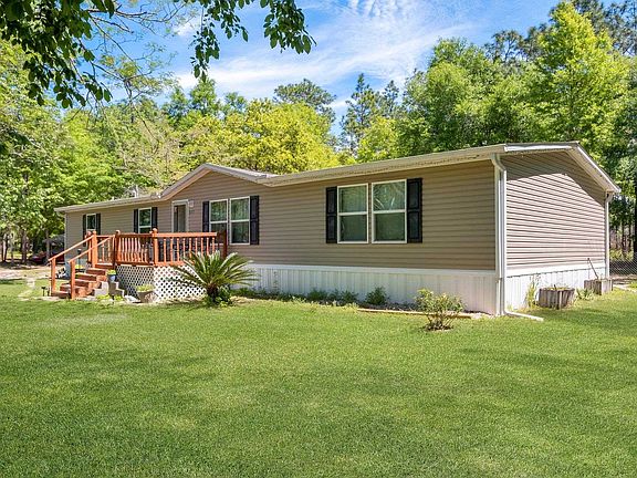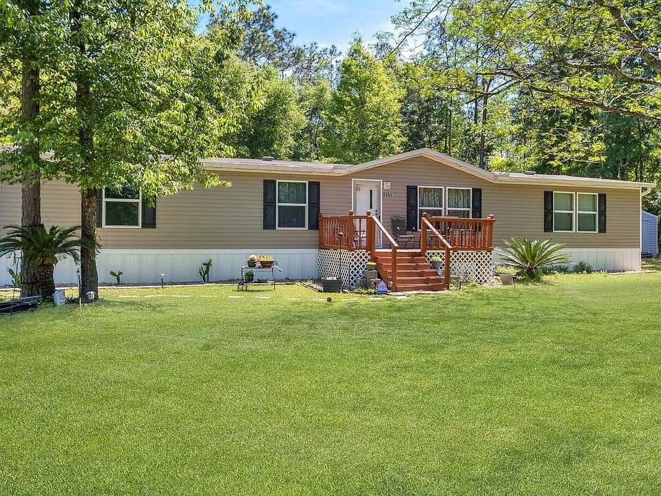 Built in 2018, this beautiful home is an outdoor lovers paradise! Perfect for families, retirees, first time homebuyers, etc. It is also close to the airport & shopping, this home boast just under 1800 sq ft of heated and cooled space. It offers all of the privacy you'd want a 1.3 acre well maintained lot that backs up to the Apalachicola national forest. Amenities include two porch areas, an above ground pool with all of the equipment, perfect for the spring and summer months, a split floor plan with nice sized bedrooms, two living room spaces, a spacious eat in kitchen, New gutters, brand new septic and drain fill installed in 2023, 2 storage sheds with electricity, a generator hook up and much more! NO HOA!