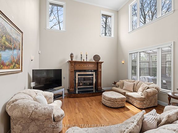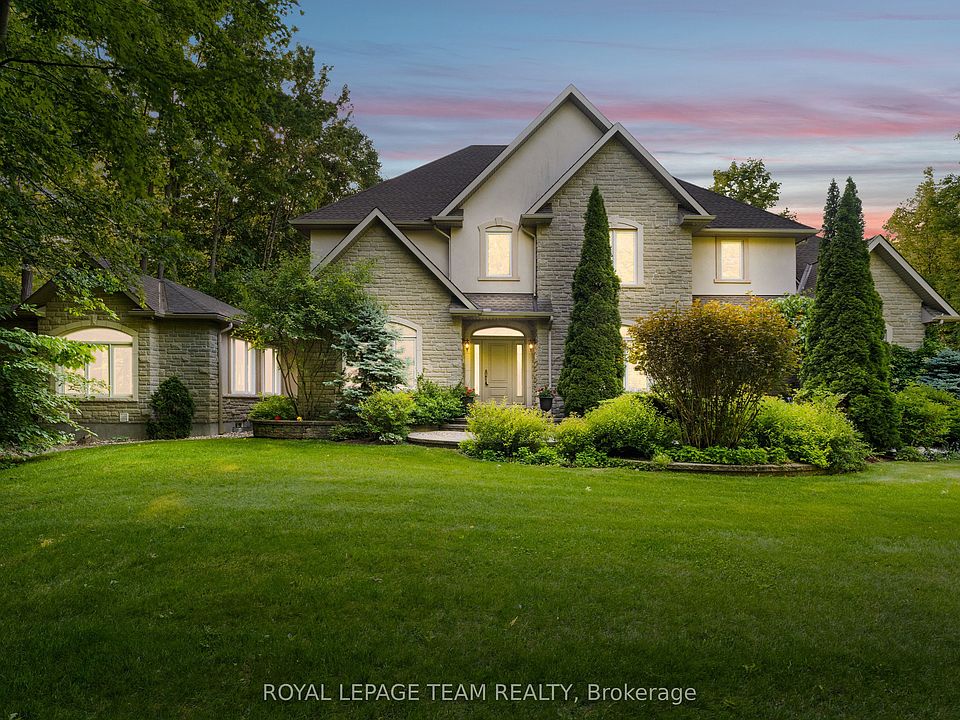 Gated country estate, Rockcrest Manor. Easy access to downtown and the airport. Situated on a 2.11-acre estate lot in Manotick's Rideau Forest, this exceptional property embodies refined living. Enveloped by mature trees and thoughtfully landscaped grounds, it offers a rare blend of privacy, elegance, and natural beauty. The home's bright and expansive interior features timeless architectural details, including soaring ceilings, clerestory windows, hardwood floors, recessed lighting, and crown mouldings. The flowing layout on the main level is perfect for both family living and entertaining, with large windows that invite natural light. On the second level, four generously sized bedrooms include a distinguished primary suite with dual walk-in closets and a luxurious ensuite. The finished lower level offers additional living space to enjoy. The dedicated indoor pool has sealed access from the main home. Enjoy year round for aqua fitness, hydro therapy, relaxation and family fun. The exterior is equally impressive, blending landscaping and hardscaping within a peaceful woodland setting. Interlock stone walkways and patios provide elegant outdoor spaces for relaxation and entertaining, while meandering paths lead to a tranquil stone-edged pond, gardens, gazebos, and a greenhouse, creating a serene retreat. Additional features include a storage outbuilding, a detached garage that is ideal for a workshop, and an attached three-car garage. Located just moments from boutique shops, restaurants, and cafés of the charming village of Manotick, this remarkable property strikes the perfect balance of luxury and convenience.