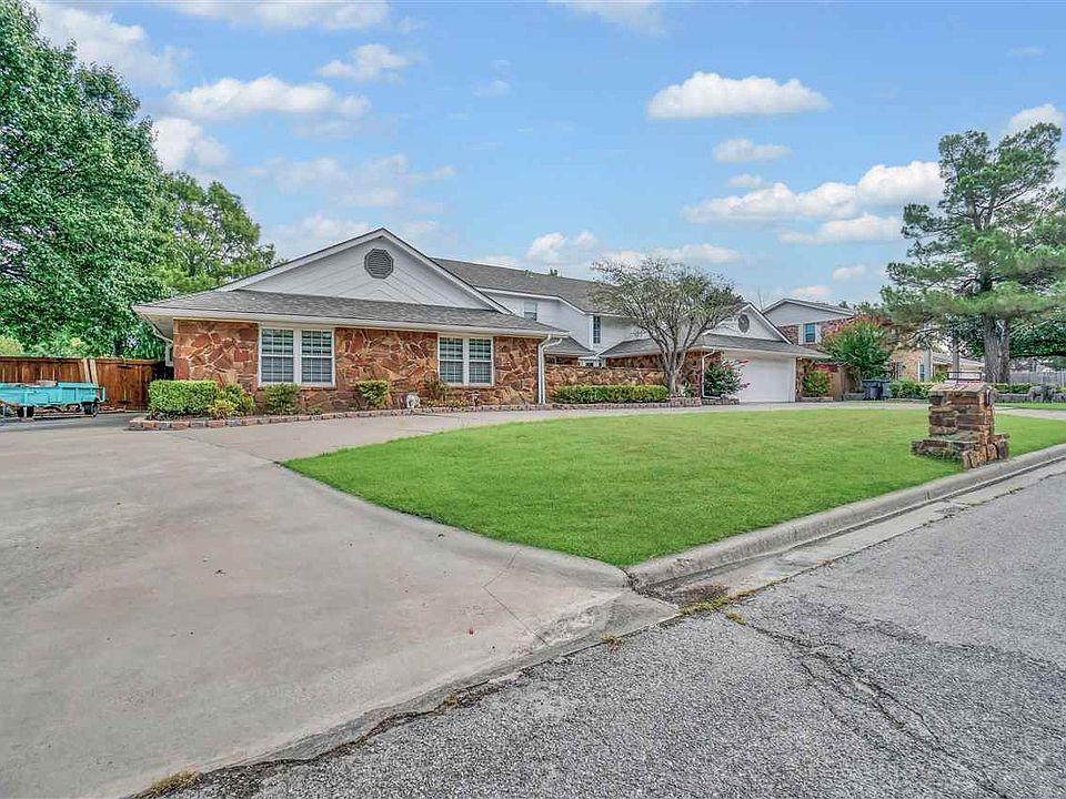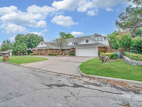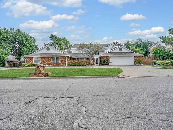 Quality custom build one of the kind home in great location. Over 7000 sq ft, 7 bedrooms, 4 1/2 bath, 4 living areas, with 2 kitchen, 2 car garage. Perfect home for in laws, elderly parents or kids, separate side of home has its own entry & driveway - tile entry. Large formal living have bay windows, west wing of house have separate entry 2 bedrooms & 2 baths, own living dining area, full kitchen with dishwash, lots of beautiful cabinets, 8 lazy susans, granite counter tops, main house have 3 additional bedrooms all are large & have built in desk full bath hallways have 3 closets. Huge open family room, 2 story high ceilings, floor to ceiling rock fireplace with gas starter & waterfall, separate Large formal dining room. 2 huge walk in pantry with pantry shelving, awesome kitchen w/island cooktop have down draft vent to outside. Lots and lots of custom cabinets, including appliance garage, double lazy susan, built in wall oven & microwave, large 2nd dining area overlook backyard. Like country fields. No houses. Upstairs, have huge primary bedroom w/sitting area, bay window, luxury primary bath, 2 person zucuzy tub, separate tiled walk-in shower - all been updated with beautiful tiles & granite counter tops from primary bedroom to covered deck for beautiful views of field. Additional 2 rooms upstairs, home have been updated, no carpets in the hose. Great curb appeal, circular driveway, huge backyard, storage buildings, covered patio gazebo. Fenced in yard. 3 HWH. 2 whirlpool tub. 3 CH&AIR. Roof was new 2023 floored attic. Double pane windows throughout the house. Truly an amazing house & great price. Call 580-248-8800 for private showings or text 580-581-7870 for more details.