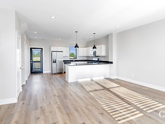 Chic and contemporary townhome with a prime location in Caledonia Schools. This stunning residence offers over 1500 SF of finished living space in an open-concept design, 9ft ceilings on the main floor, and floor-to-ceiling windows that flood the space with natural light, highlighting the sleek, modern finishes throughout. Experience the spacious living area, dining area, and open-concept kitchen with LVP floors, quartz counters, subway tile backsplash, and stainless steel appliances. The primary ensuite bathroom offers a tiled shower, a double-sink vanity, and an upgraded walk-in closet. Two additional bedrooms, a full bath, and additional laundry on the upper level. Ample additional storage, a secondary laundry space, and an oversized two-car garage on the lower level.