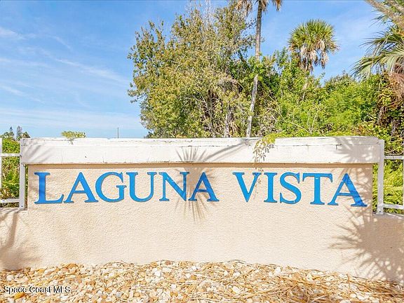 Be sure to include this updated Laguna Vista condo on your ''Must See List'! Move-in ready and beautifully maintained, convenient first-floor riverfront unit is located on the South side of the building and includes a private oversized two-car garage on the same side for easy access. This spacious condo features 3 bedrooms, 2.5 bathrooms, and an open floor plan with high ceilings. Tile flooring runs throughout the main living areas, with carpet in the bedrooms for added comfort. The utility room includes a washer, dryer, and utility sink for convenience. Step out to the tiled, covered back porch - complete with a gate that provides direct access to the pool, spa, and dock area, perfect for swimming, relaxing, or fishing, etc. Take in the stunning sunrise views over the Intracoastal River and enjoy watching rocket launches to the North right from your own backyard! The updated kitchen is truly impressive, featuring abundant cabinetry, stainless steel appliances, and modern finishes. All of the bathrooms have been tastefully remodeled, including a spectacular primary bathroom that you will have to see to believe. Experience the best of Florida living in this exceptional riverfront community that Laguna Vista offers - a pool, spa, tennis courts, and more.