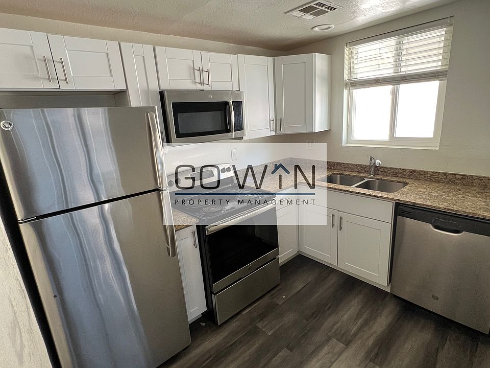 Welcome to 6005 West Gardenia Avenue in Glendale, AZ! This charming 1 bedroom, 1 bathroom apartment offers a spacious open floor plan with new laminate flooring and plenty of natural lighting. The kitchen features stainless steel appliances, including a dishwasher, microwave, stove/oven, and new cabinets. Step outside to your large private patio and fenced yard, perfect for enjoying the beautiful Arizona weather. The apartment has been freshly painted, creating a clean and inviting space for you to call home. Don't miss out on this fantastic opportunity to live in a well-maintained and updated apartment in a convenient location. Tenant to pay water/ sewer/ trash fee of $40 and city rental tax 2.2%. Qualifying terms: no recent evictions, must make 2.5x income/rent, no felonies.