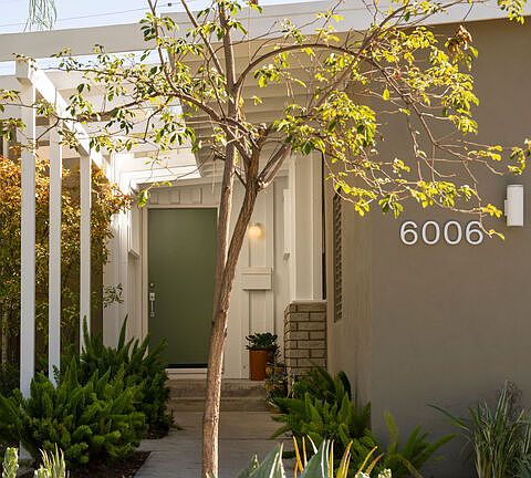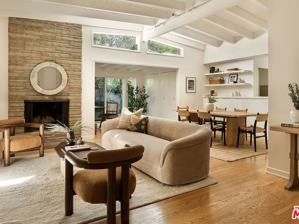 Mid-Century Modern gem in prestigious Encino Village Designed by renowned architect Martin Stern, AIA. Located in the highly sought-after Encino Elementary School district, this beautifully updated 4-bedroom, 3-bath home features one of the most desirable and spacious floor plans in Encino Village. Thoughtfully renovated for today's lifestyle, it blends modern finishes with timeless mid-century design elements. Inside, you'll find hardwood floors throughout, dramatic open-beam vaulted ceilings, and a classic floor-to-ceiling mid-century fireplace. The versatile den is perfect as a home office or creative space. The remodeled kitchen boasts custom Corian countertops with integrated dual sinks, soft-close drawers, and premium stainless steel appliances including a GE Monogram Advantium microwave with convection, Monogram oven, and Bosch dishwasher. All bedrooms feature vaulted ceilings and hardwood flooring. A newly added, fully permitted primary bathroom offers spa-like luxury with a quadruple-head Kohler Smart Shower with steam, dual vanities, and a private water closet. Outside, enjoy lush yet low-maintenance landscaping with an eco-friendly drip system as well as orange, lemon and peach trees. The 15-foot "X500" swim spa from Endless Pools is ideal for relaxing year-roundwhether on warm summer days or cool winter nights. Additional highlights include: Custom Milgard aluminum windows that replicate the original 1950s style, Copper plumbing, updated HVAC with whole-house air filtration, 200-amp electrical panel and an attached two-car garage with built-in storage and workshop. Situated just moments from the park with access to playgrounds, tennis courts, soccer and baseball fields and a community center. Nearby bike paths lead to scenic Lake Balboa. Minutes from the 101 and 405 freeways, Encino Village is an idyllic neighborhood known for its strong sense of community and regular block parties.