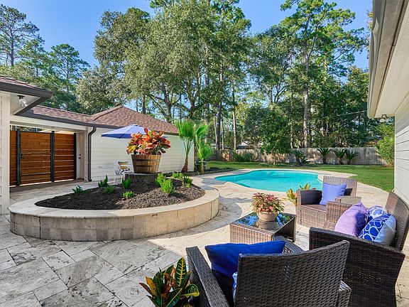 Totally Updated and Fabulous one story with a refreshing pool! Embrace the charm of this stunning kitchen with new cabinetry, countertops, all new stainless appliances, and a massive breakfast bar. Oversized dining room leads to the office space with a barn door entry. The living room features an amazing beamed ceiling and overlooks the gorgeous backyard and pool! The primary suite features a beautiful accent wall and a fully updated bath! Three additional bedrooms and tons of extra storage space! The backyard oasis features a sparkling pool and plenty of patio space to relax or have a cook out. Northampton offers a location second to none, north of TX99, mins. to The Woodlands plus Golf, Tennis, Parks, Pools, & Playgrounds!