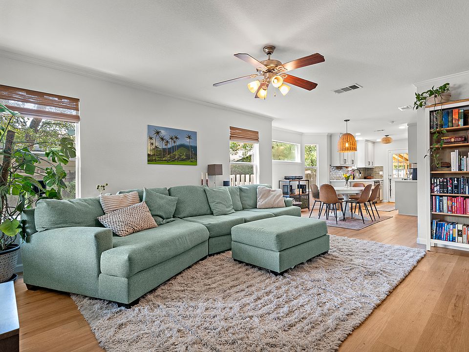 Updated bathroomsLarge covered porchQuartz countertopsBright open kitchenSpacious fenced backyard