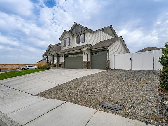 MLS# 288169 MLS# 282305 Welcome to this like-new home in the desirable Madison Park area of West Pasco! Built in 2021, this beautifully maintained home sits on a spacious almost 1/4-acre lot. The inviting front entry features a charming covered porch. Step inside to find a spacious layout that includes a large office and an open-concept family room, kitchen and dining area. The kitchen is a true highlight with an island, a full pantry, full backsplash, and quartz countertops while LVP flooring flows seamlessly throughout the main living areas. Upstairs, you'll find four generously-sized bedrooms, each offering ample closet space and plenty of natural light. A loft area provides extra living space, ideal for a playroom, office, or lounge area. The upper level also includes a conveniently located laundry room and full bathroom. The backyard is truly the gem of this home, featuring a large covered patio and an extensive concrete pad that is perfect for outdoor activities like riding bikes or playing basketball. A double gate provides extra space for parking your toys, making this the ideal home for those who need extra storage or have recreational vehicles.